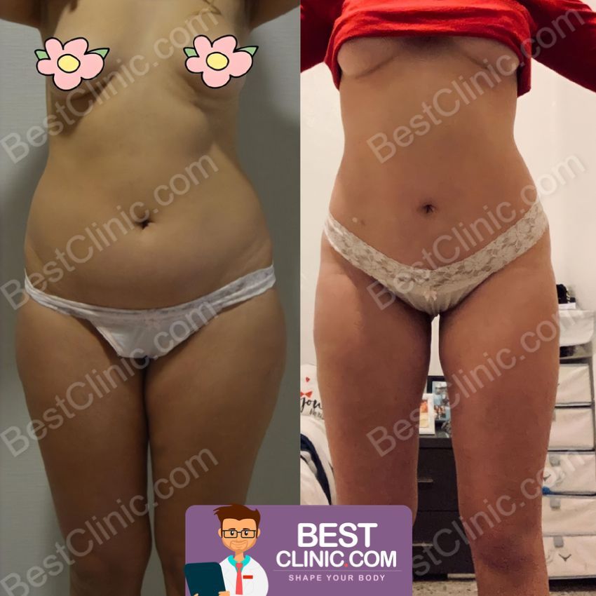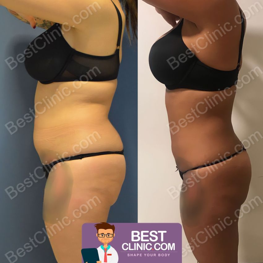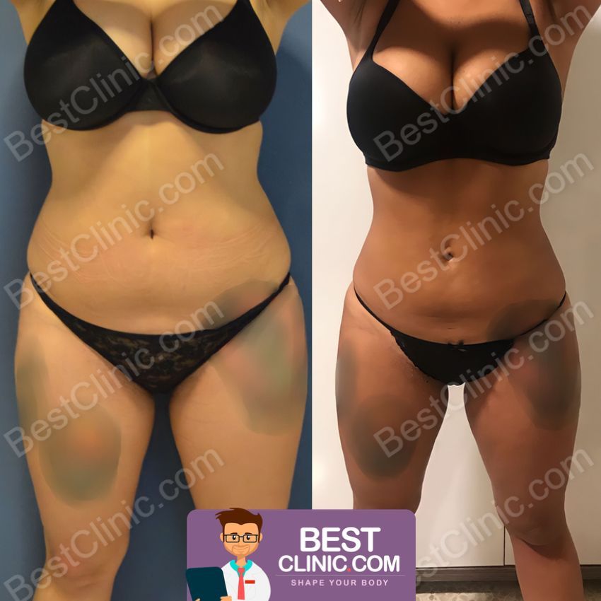 - Kadınlarda karın liposuctionı, uyumlu bir figür için uyluk veya diz liposuctionı ile birleştirilebilir.